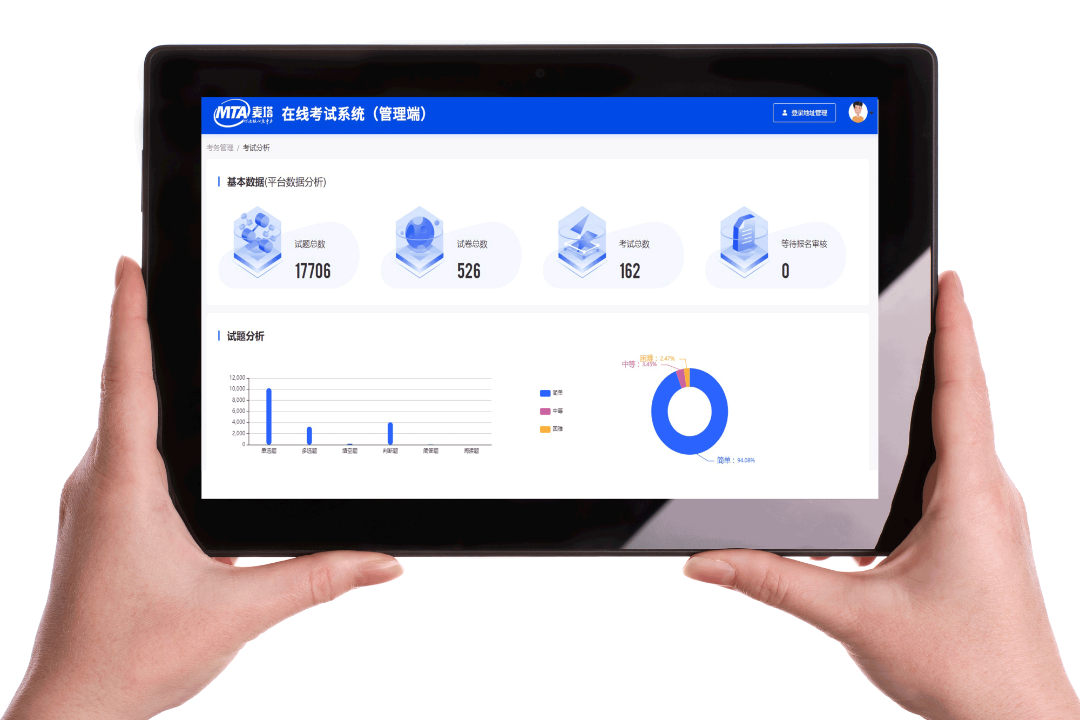 麦塔在线考试系统自2010年上线以来,已经成功帮助上千家学校和教育机构组织十几万场次的在线考试。