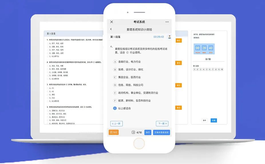 多端支持:支持PC使用,更支持移动端H5使用,还可以支持微信绑定答题,为随时随地考试提供了便利。