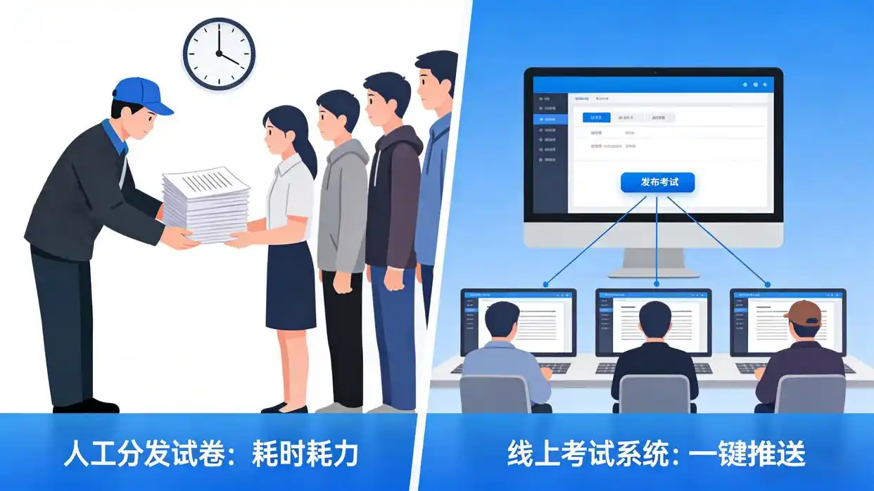而学校、培训机构、企业每年为组织考试,需付出高昂成本:一场100人的考试,需筹备3间60㎡以上考场,配备6名监考、3-5名命题人员、3名阅卷老师,消耗200份试卷,从命题到阅卷全程至少耗时30天。纸张印刷费、场地租赁费、人员劳务费,再加上难以估量的时间成本,已成为各类组织的沉重负担。