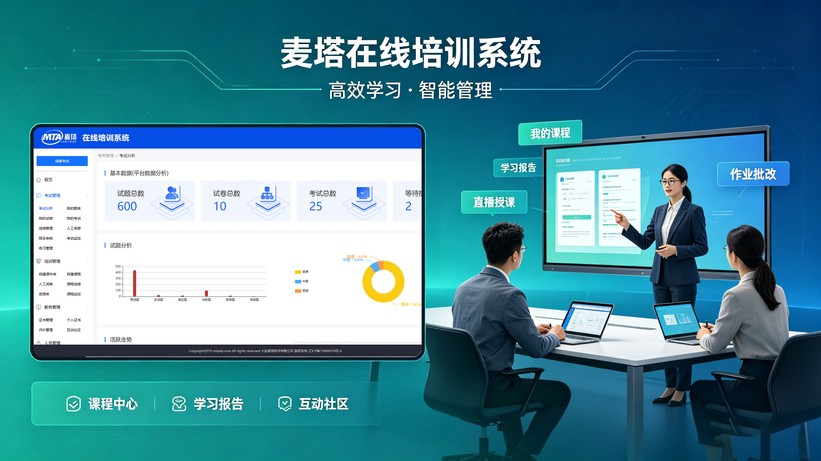 麦塔在线培训系统致力于为企事业单位、教育培训机构搭建私有化在线学习平台,彻底打破传统培训的时间与空间限制。